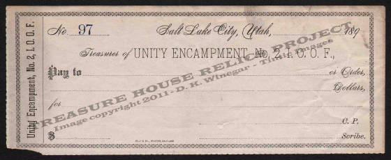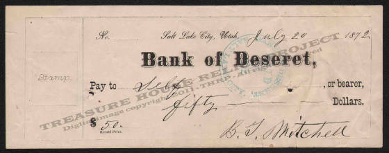 is a check from the Salt Lake City Banking House and is similar in style to other checks of the period. This one, issued to
