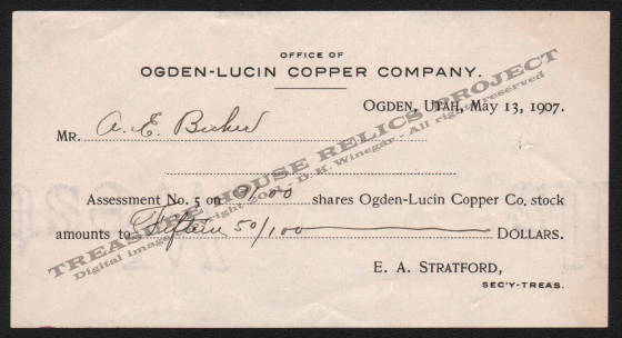 in Utah. A number of mining companies had accounts with them. Several examples of various Walker Brothers Bankers' checks