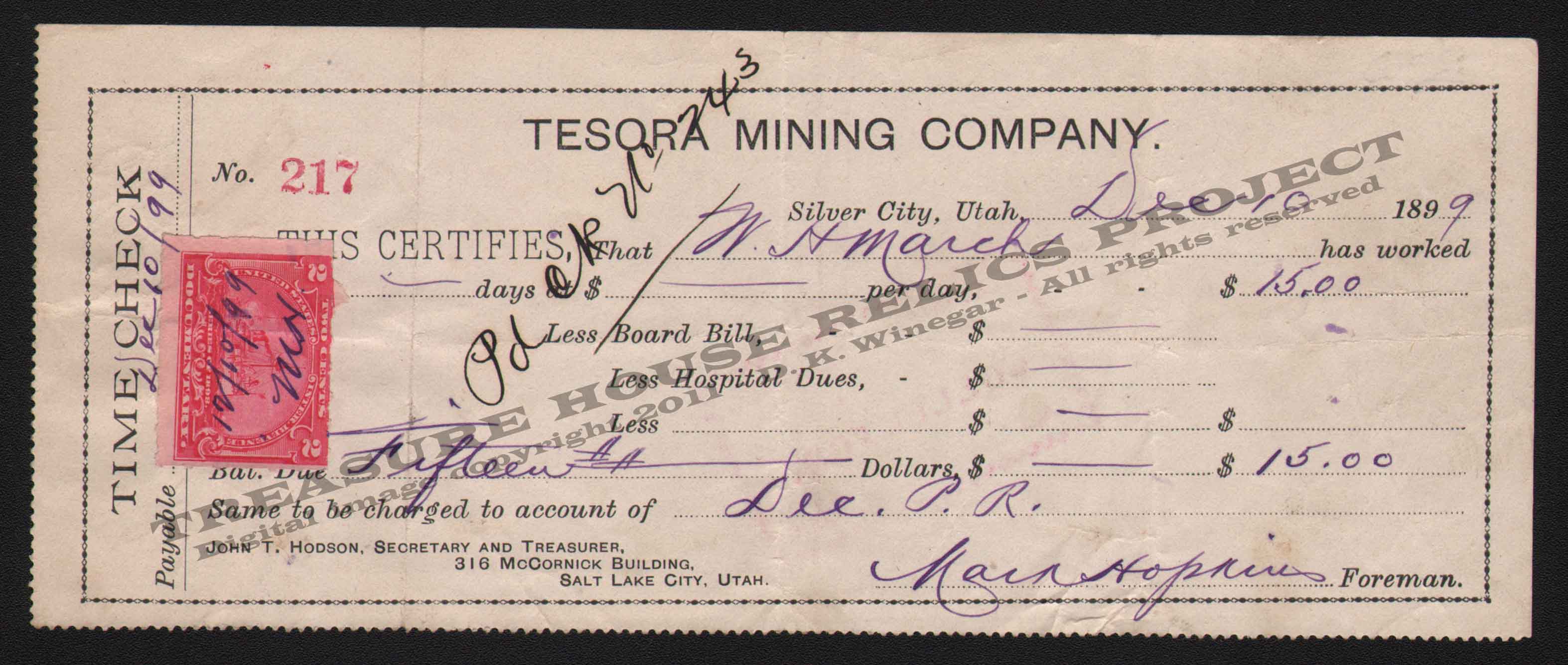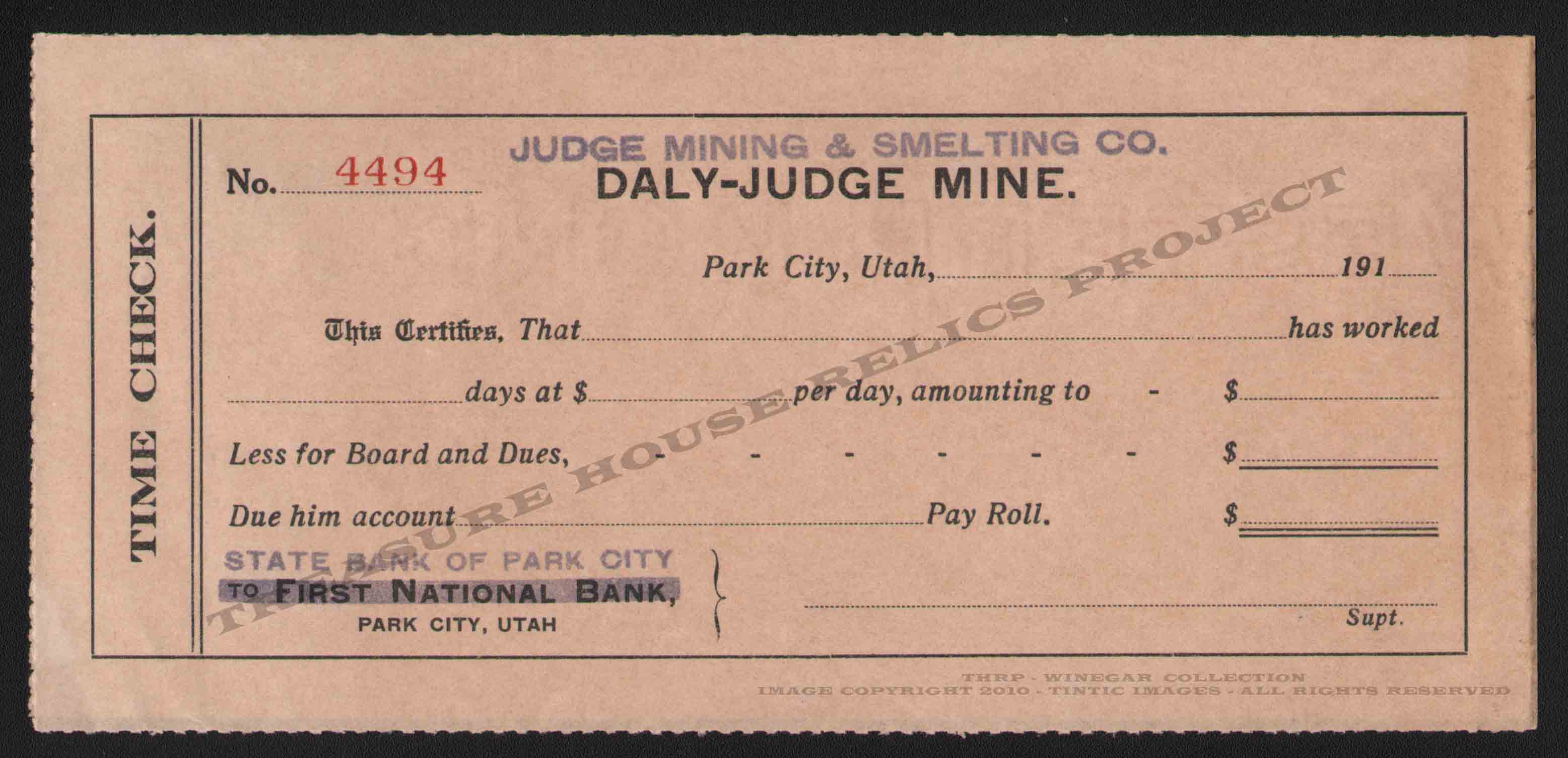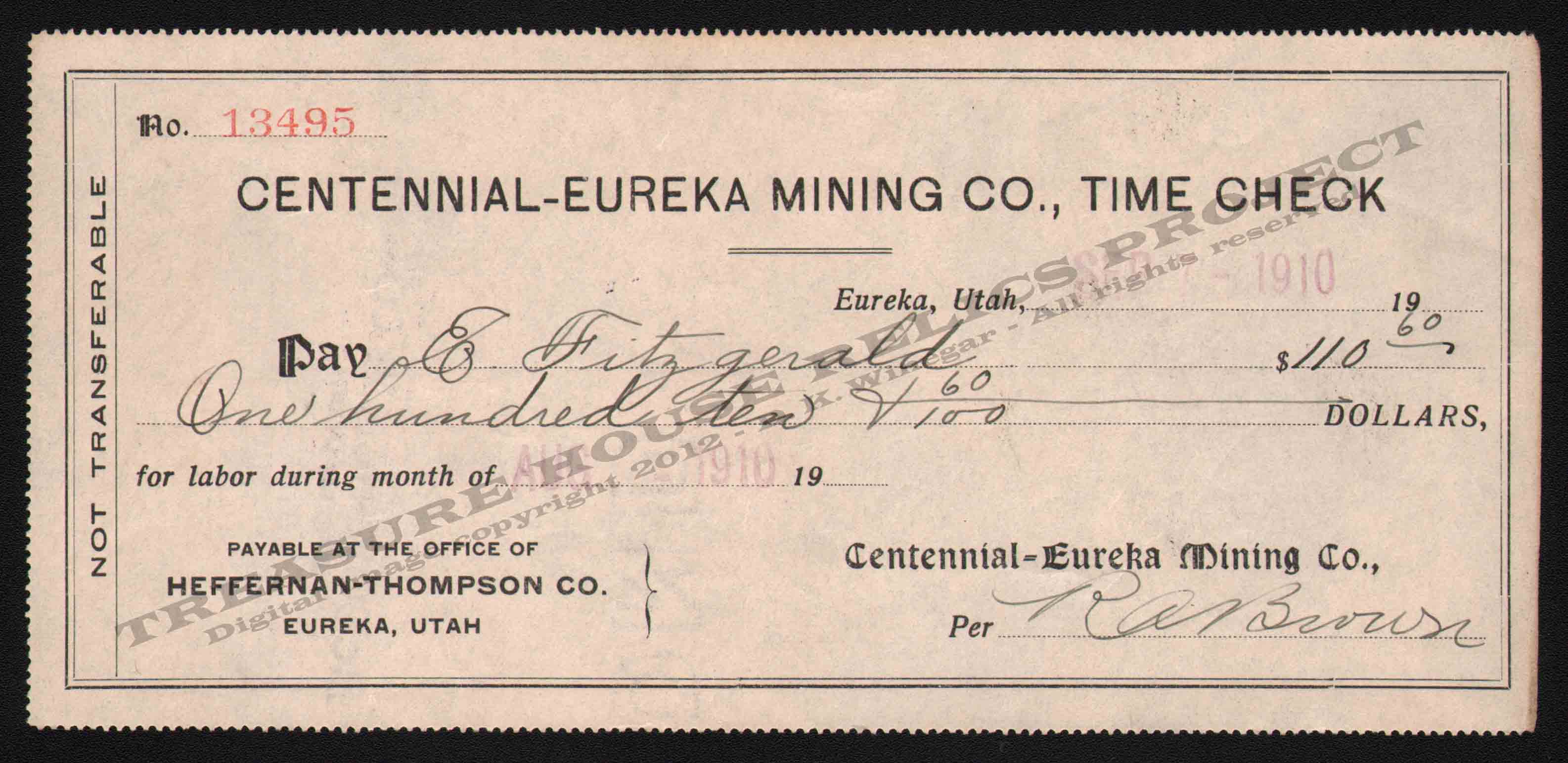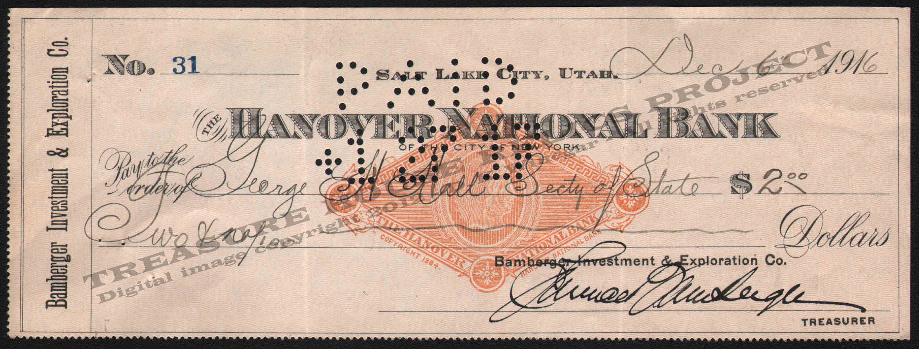 of Utah. These checks, issued and redeemed, are fine examples of script printing and security paper of the day. These checks