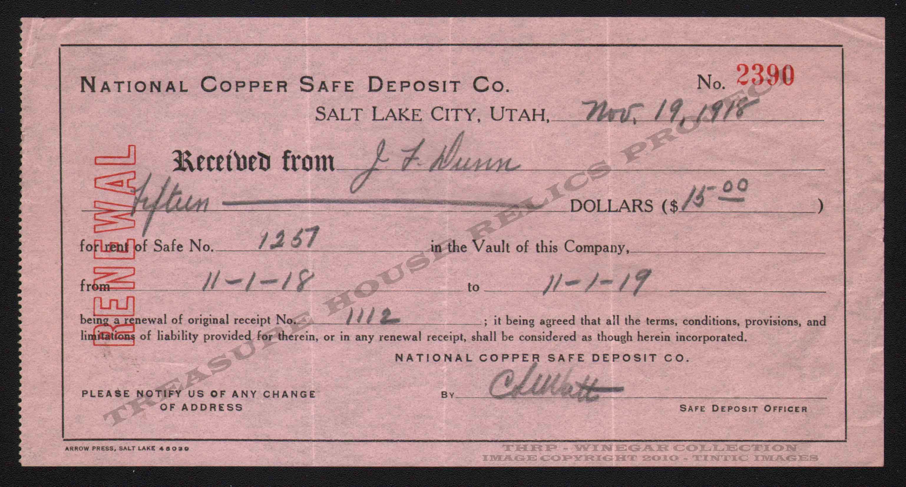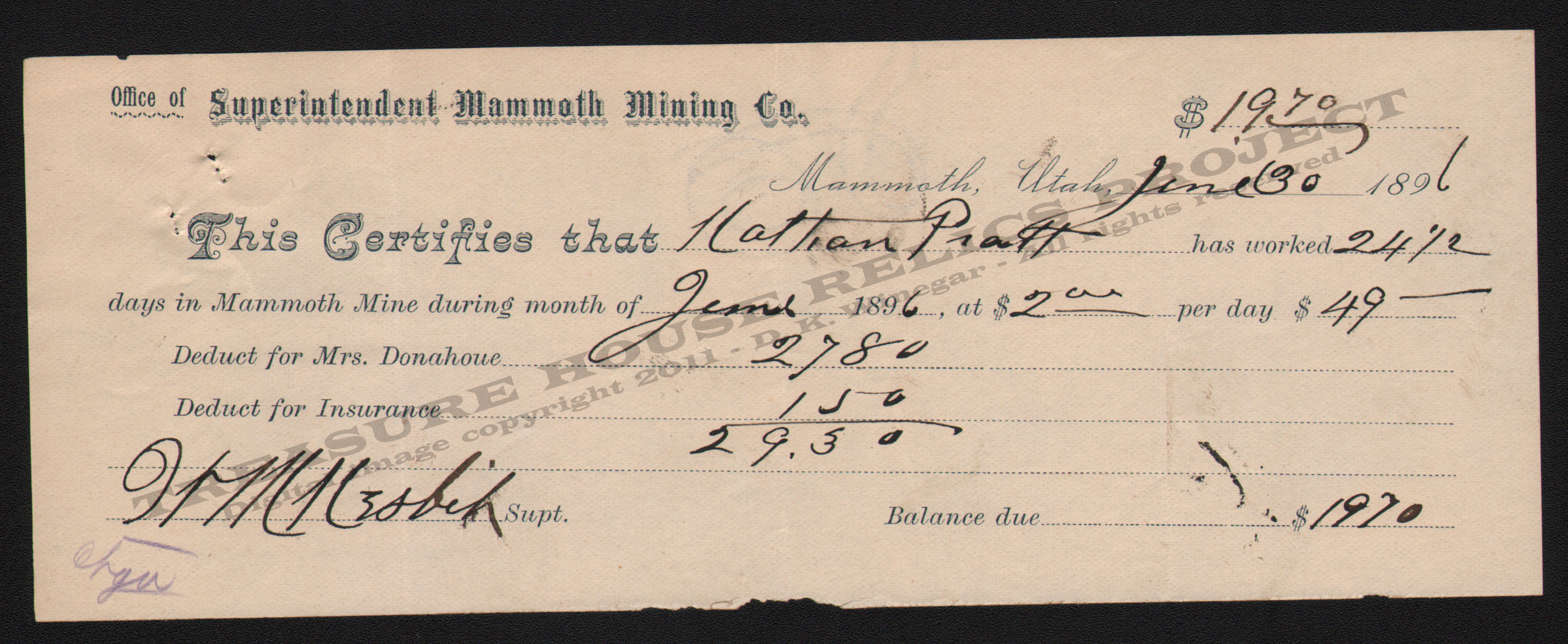 a Utah transaction, this receipt is typical of the and a good sample of an early document, simple black printing on basic white paper. No printers name