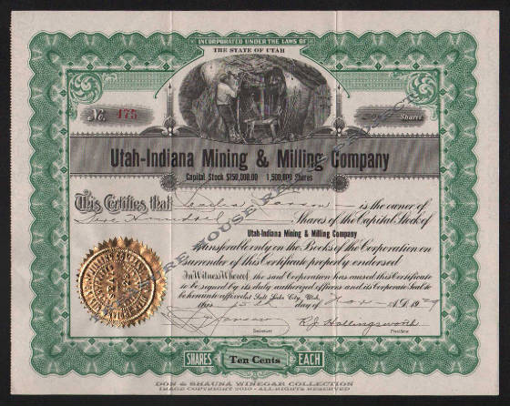 | UTAH INDIANA MINING & MILLING CO #475 - DKW |