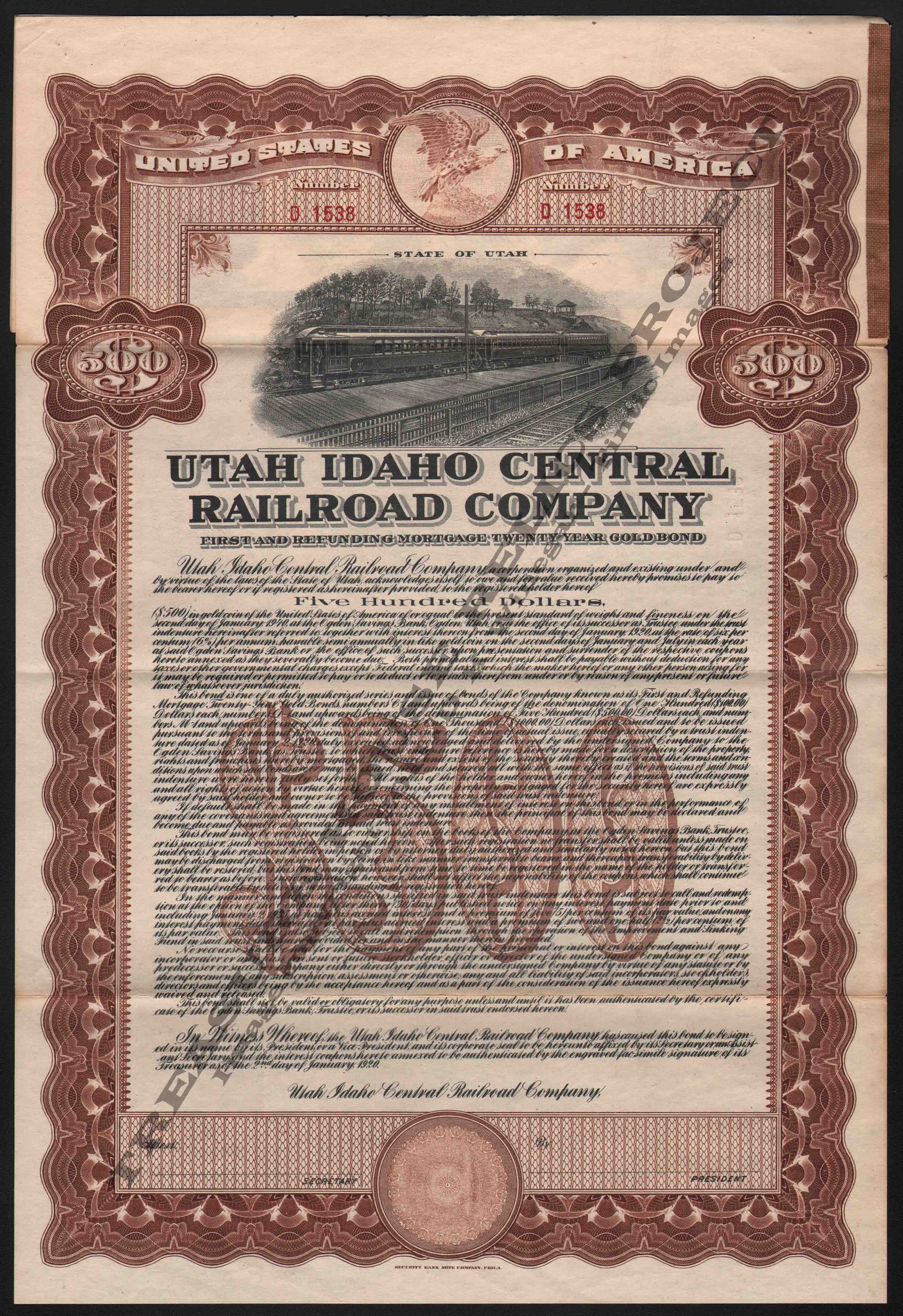 Utah Rapid Transit Company bond certificate image provided courtesy David Beach, Rare Stock & Bond Dealer. View and purchase this certificate on the web at: